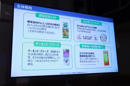 このような市場動向から、カゴメは「野菜生活100 オリジナル」や「アーモンド・ブリーズ」のリニューアルを実施することを発表。