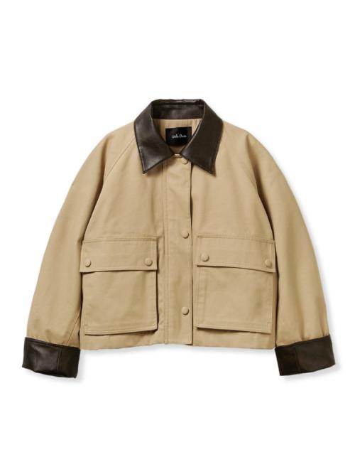 「ショート丈テントシルエットハンティングジャケット」は、ルミネ有楽町店先行発売アイテム。トレンドのハンティングジャケットを、ラフに着られるキャンバスライクな素材で仕立てた秋アウター。大胆に広がったボリューミーなテントシルエットと、レザー調の襟がポイント。インナーを重ね着しても余裕のあるゆったりシルエットになるのが特徴。レースのアイテムやワンピースなどフェミニンなアイテムとのスタイリング相性も抜群!