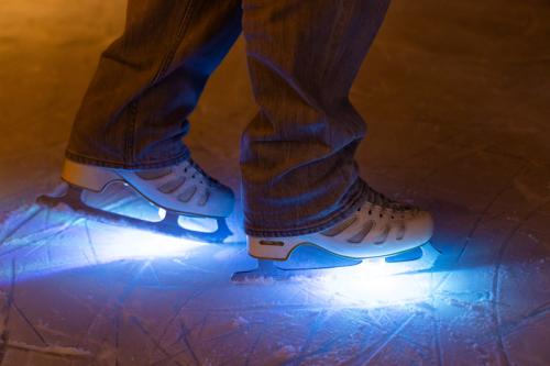 光るスケート靴「スターライトシューズ」もレンタル。足元に光が広がり、光の軌跡が氷に反射。滑走そのものが幻想的な光景になります!