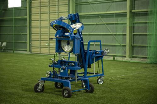 「硬式専用昇降式3ローターマシン」は、硬式ボールにに対応。カーブ、スライダー、フォークなどの多彩な変化球を再現できるのが特徴。インコースやアウトコース、高低差も自由に調整可能。