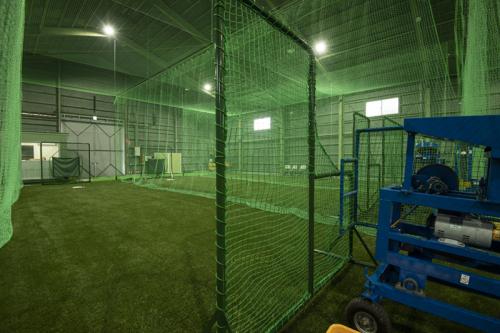 室内練習場の名は「Fose Kift Academy(フォースキフトアカデミー)」。もともと倉庫として使われていた場所を全面改装。163坪の広々した室内で野球に打ち込むことができます! 全面人工芝を採用し、大型ネットも完備。打撃練習や守備練習、トレーニングなどの幅広い練習に対応。