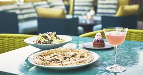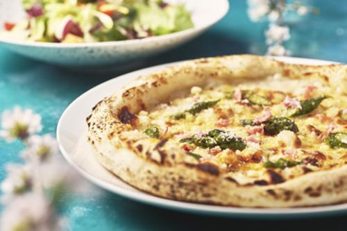 プランの料理は全て桜をイメージ。ナポリ出身エグゼクティブシェフが作るピザには、桜の花びらを使用。春に旬を迎えるアスパラガスとチーズを合わせた季節感たっぷりの逸品を用意。