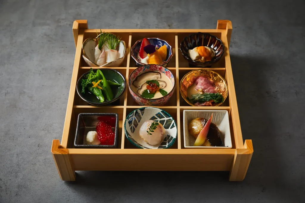 料理の核となるのは、素材ごとに最適化された熟成のプロセス。産地にこだわり抜いた肉や魚、そして野菜まで、それぞれの個性を活かして熟成。旨味が最も引き出されるタイミングを見極め、一皿ずつ丁寧に仕上げていきます。カウンター越しに広がるのは、職人の手さばきや火入れの音、立ち上がる香り。五感を刺激するライブ感溢れる演出は、豊かな食体験へと変えてくれます。熟成の真髄を割烹という枠組みで表現する、贅沢な挑戦です。