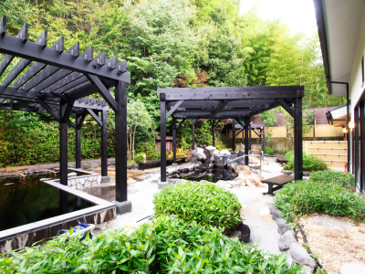 4種類の露天風呂 :源泉かけ流しあつ湯 源泉ぬる湯 くつろぎ湯 寝ころび湯