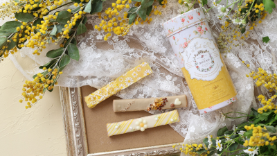 紅茶チョコレートにはダージリンを使用。華やかな香りがチョコレートの味わいに深みをもたらしています。はちみつレモンチョコレートは、ホワイトチョコレートにレモンとはちみつを加えたもの。甘酸っぱい香りが春らしく、爽やかな印象です。