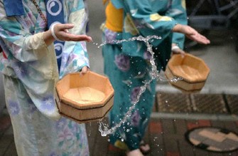 打ち水は玄関先や庭に水をまくだけ、という至ってシンプルな行いだ。しかしながら、環境省のガイドラインによると、打ち水を行うことで、体感温度が1・5度前後下がるという。