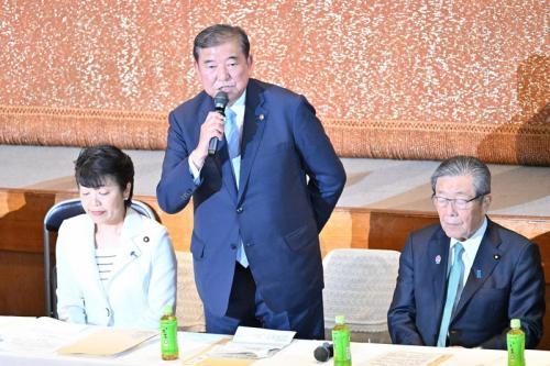総会では、参院選で大敗した石破首相の責任を問う声が相次いだ。首相は総会後、首相官邸で記者団に「党則、そして今議論が進んでいる(参院選の)総括も踏まえてやっていければと思う」と語った。