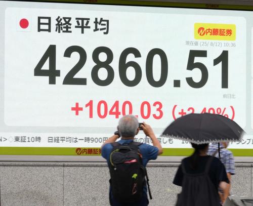 日経平均株価は7月の日米関税交渉の合意を受け、同24日に一時約1年ぶりに4万2000円台に上昇した。その後、米国の景気後退懸念などから4万円台を割り込む局面もあったが、8月8日には米関税措置の不透明感が和らいだことなどから再び一時4万2000円台に回復していた。