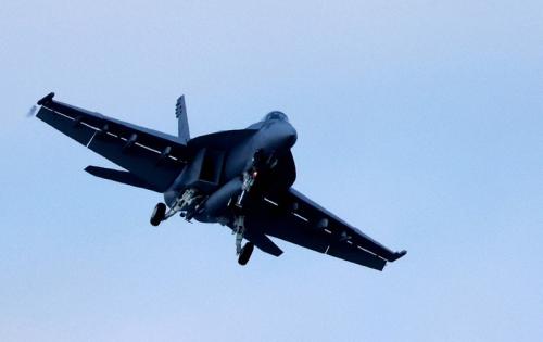 在日米海軍は17日、米軍岩国基地(山口県岩国市)で米原子力空母ジョージ・ワシントンの艦載機による陸上空母離着陸訓練(FCLP)を始めた。