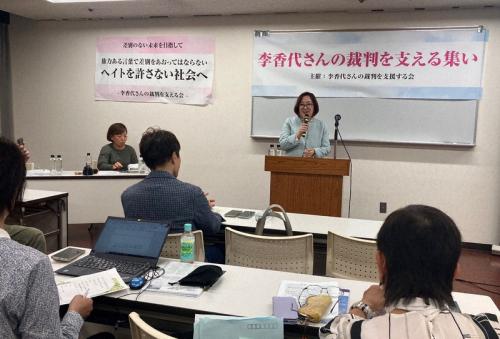 支援集会で李さんは「添田市議の弁論での言葉は、在日コリアンへの差別を正当化し、人権を軽んじる侮辱的発言だ」と話した。さらに「『日本人ファースト』という言葉を通じ、排外主義をあおる風潮がある。今回の裁判はそうした風潮への問いかけでもある」と語った。