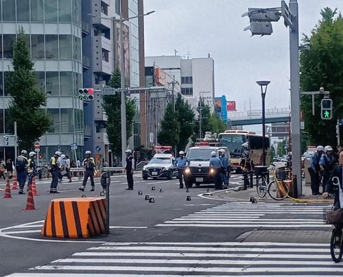 現場は、JR名古屋駅から南に約700メートル離れた交差点。【塚本紘平】