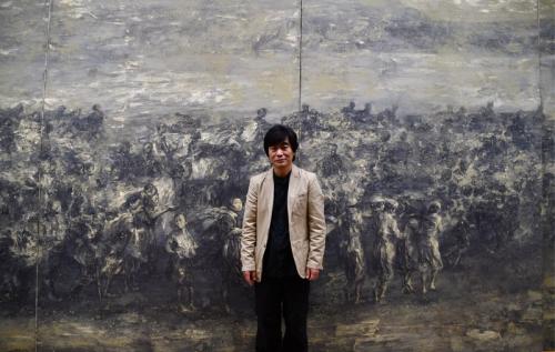 敗戦後に中国の港から日本へ引き揚げる人々の姿を、中国人画家の王希奇(ワンシーチー)さん(65)が縦3メートル、横20メートルにわたって描いた巨大絵画が6日から福岡市博多区の福岡アジア美術館で始まる「王希奇『一九四六』福岡展」で展示される。戦後、福岡市の博多港には約139万人の引き揚げ者が着いた。王さんは福岡での初めての展示に「絵に描いた人々を古里に連れてきたような感じがする。うれしい」と話す。11日まで。