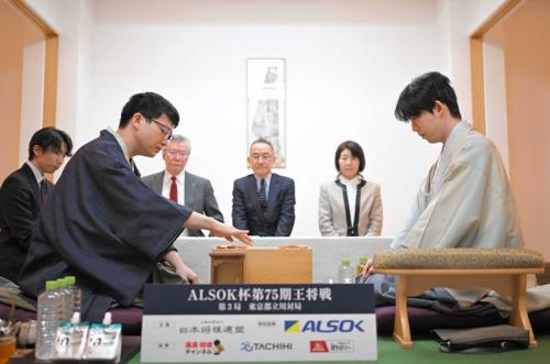 藤井聡太王将(23)に永瀬拓矢九段(33)が挑むALSOK杯第75期王将戦七番勝負(毎日新聞社、スポーツニッポン新聞社特別協力、ALSOK特別協賛)の第3局が3日午前9時、東京都立川市のオーベルジュときとで始まった。藤井王将は工夫を凝らした駒組みで力戦模様となった。