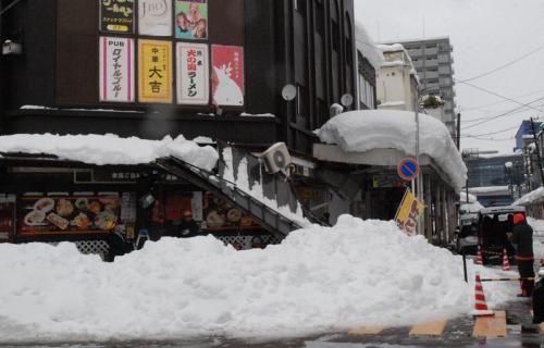 一方、長岡市殿町では2日午後7時半ごろ、飲食店などが連なる商店街の「がん木」と呼ばれるアーケードの一部が雪の重みで数メートルにわたって崩れた旨の通報が長岡署にあった。同署によると、けが人などはない。この時間帯の同市の積雪量は平年の約2・5倍以上となる139センチだった。