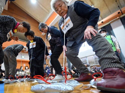 6日に開幕するミラノ・コルティナ冬季オリンピックより一足早く豪雪地帯の山形県大蔵村で3日、高齢者を対象にした大運動会「冬季!ピンピンピック」が開催された。参加者は独自の競技に臨み、熱戦を繰り広げた。