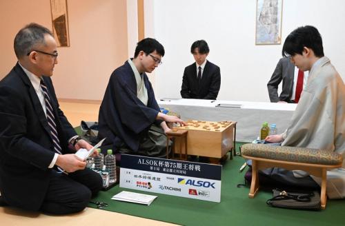 前日に続いて雲一つない青空が広がる肌寒い朝を迎えた立川。永瀬九段が再開20分前に下座に着いて瞑想(めいそう)にふける。その8分後に藤井王将も対局室に入った。1日目の手順を再現した後、立会の島朗九段が封じ手を開き、「3八飛です」と読み上げた。