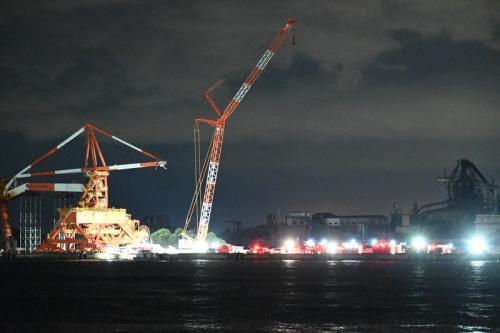 40代の男性作業員1人の行方が分かっておらず、神奈川県警などは8日朝に捜索を再開。男性は海に転落したとみられ、県警や川崎海上保安署はヘリコプターや船で、上空や海上から捜索している。