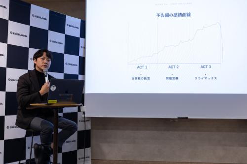 かつては映画の助監督が作るものだったという映画予告編は、現在では専門の制作会社が作っている。映画予告編をはじめ、年間100本以上の予告編制作・プロモーションムービーを制作する株式会社ココロドルの代表取締役 密本雄太氏が、その舞台裏をラウンドテーブルという形で紹介してくれた。密本氏は映像専門学校を卒業後に渡米、ハリウッドで映画予告編の制作技術を学んだ。帰国後に起業して現在に至る。
