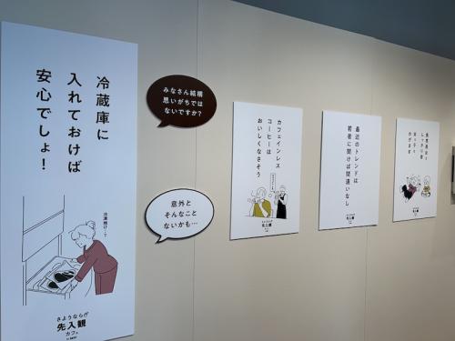 1階では、いつの間にか脳にインプットされてしまった「先入観」がイラストとともに掲示された。例えば「冷蔵庫に入れておけば安心でしょ」「最近のトレンドは若者に聞けば間違いなし」とか「キラキラネームは平成か令和生まれ」とか。コーヒーに関しては「子どもはコーヒーを飲んじゃだめって言うよね」とか「カフェインレスコーヒーはおいしくなさそう」とか。渡されたコーヒーを飲みながら、「これ、あるある」と頷いた人も多かったに違いない。