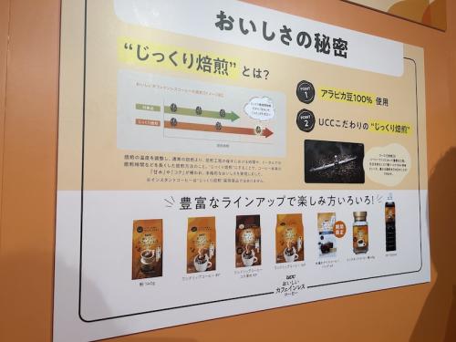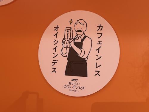 2階に上がると、最初に受け取ったコーヒーがカフェインレスコーヒーであることが明かされ、カフェインレスコーヒーとは何かという解説や「UCC おいしいカフェインレスコーヒー」ブランドの紹介が展示されている。