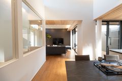 外観・内装ともに、和の趣が際立つ洗練されたモダンデザインとなっております。シンプルながらも存在感のあるフォルムに、温かみのある照明と植栽が調和し、昼と夜では表情が違い、どちらも美しく映えるデザインに仕上げました。LDK横に和室を設け、家族がくつろげる空間を確保。来客時のおもてなしや、趣味・仕事にも活用できます。玄関直結のインナーガレージには、大型SUVと自転車の駐車が可能。雨の日も濡れずに車の乗り降りができる設計です。