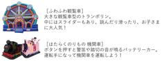 お子さまが安心して遊べるふわふわ遊具や、懐かしい機関車型のバッテリカーが登場します。