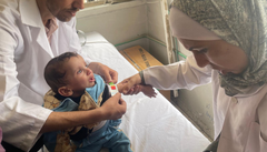 ガザ診療所で栄養状態を検査