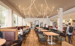 佐野市無形民俗文化財に指定された「浅間の火祭り」の光の道をイメージした照明の下、明るく開放的な空間で、気軽にご利用いただけます。また、DXにも取り組み、順番待ちシステムにより待ち時間やオーダー時間の効率化・有効活用を図るとともに、自動配膳ロボットが料理を安全かつスピーディにお届けします。