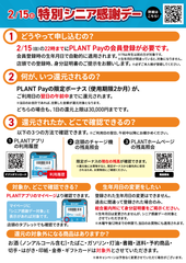 内容 : 満60歳以上の方がPLANT Payでお支払いいただくと