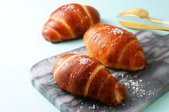 北海道産小麦『みのりのちから』と『はるきらり』使用、プレッツエル風の塩パンのため他の塩パンにはないもちもち感が特徴です。