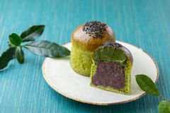 静岡抹茶をパンのような饅頭生地に練り込み、又一庵の自慢の粒あんとバターを包み焼き上げました。天面には黒ごまをのせ、抹茶と共に香ばしさを引き立てます。とろけるあんバターに静岡抹茶がさわやかに香る、季節限定の熱海ばたーあんパンまんじゅうです。