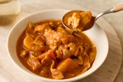 中華圏で親しまれてきた豆腐由来の伝統食材「豆腐干」を、平打ち麺のように仕立て、カレーと合わせてそのまま食べられる一皿に仕上げました。
