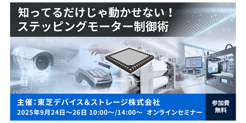 川崎--(BUSINESS WIRE)--(ビジネスワイヤ) --東芝デバイス&ストレージ株式会社は、9月24日(水)から26日(金)の3日間、「知ってるだけじゃ動かせない!ステッピングモーター制御術」 と題し、無料Webセミナー(ウェビナー)を開催します。
