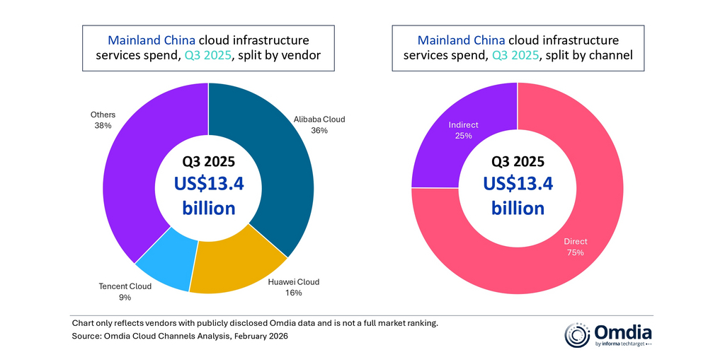 ロンドン--(BUSINESS WIRE)--(ビジネスワイヤ) --オムディアの調査によると、中国本土の2025年第3四半期のクラウド・インフラサービス市場規模は134億米ドルに達し、前年比24%増となりました。これは2四半期連続で20%超の成長が達成されたことを意味します。AIに対する持続的な需要によって、クラウド・インフラの導入が引き続き後押しされているだけでなく、クラウド・インフラの中核サービス全体への波及効果も生み出されており、クラウド・リソース消費の本番環境ワークロードへのシフトを加速させています。これを受け、大手クラウド事業者は引き続きAI機能の構築を進めるとともに、モデルの製品化と役割の分化を一層重視しながら、AIエージェント・プラットフォームを支えるツールチェーンの強化を図っています。2025年第3四半期の市場シェアは、アリババクラウドが36%、ファーウェイクラウドが16%、テンセントクラウドが9%となっています。