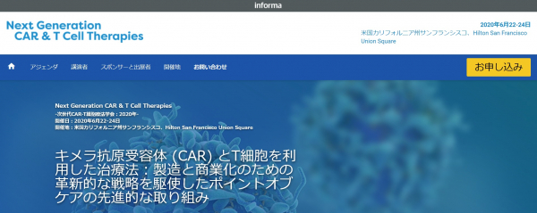 国際会議「Next Generation CAR & T Cell Therapies-次世代CAR-T細胞療法学会:2020年」(Informa Connect主催)の参加お申込み受付開始