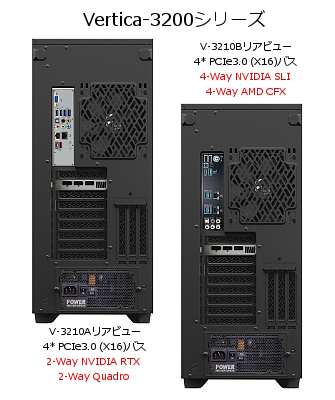 Aシリーズでは VIDIA SLI による 2-Way RTX/Quadro GPUグラフィックスに、Bシリーズでは NVIDIA SLI および AMD CFX による 4-Way マルチGPUグラフィックスに対応します。(3)