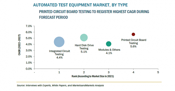 自動試験装置(ATE)の市場規模は、2022年の70億米ドルからCAGR4.7%で成長し、2027年には88億米ドルに達すると予測されています。自動試験装置市場の成長は、家電産業における需要の高まりと、自動試験装置の使用により達成される製造時間の短縮を理由として増加しています。また、半導体産業を後押しする政府の取り組みも、今後、市場に成長機会をもたらすものと思われます。
