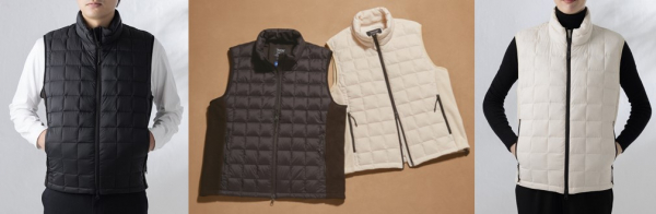 シルエットをキレイに見せるハイネックのデザインは、スーツスタイルのインナーダウンとして、またアウターとしてロングTシャツやパーカーと合わせることも可能。両脇にはストレッチ性の高いフリース素材を採用し、より動きやすく、出張や旅行はもちろん、キャンプなどのアウトドアシーンやゴルフでも活躍する1着です。