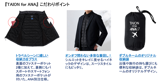<ANAオリジナル>TAION for ANA トラベルインナーダウンベスト(ブラック)