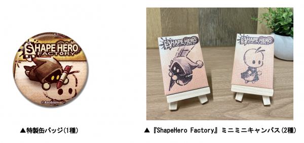 イベントにて試遊いただいた方には、先着で特製缶バッジや、『ShapeHero Factory』ミニミニキャンバスをプレゼントいたします。