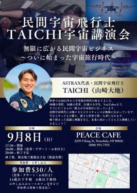 タイトル:民間宇宙飛行士TAICHI宇宙講演会 in HAWAII「誰もが宇宙に行ける時代がやってきた!」