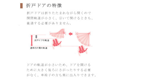 「ソフトクッション折戸」は、戸先にクッション材が入っている折戸です。クッションが指を守るため小さなお子さまがいるご家庭でも安心してご使用いただけます。