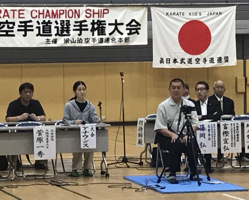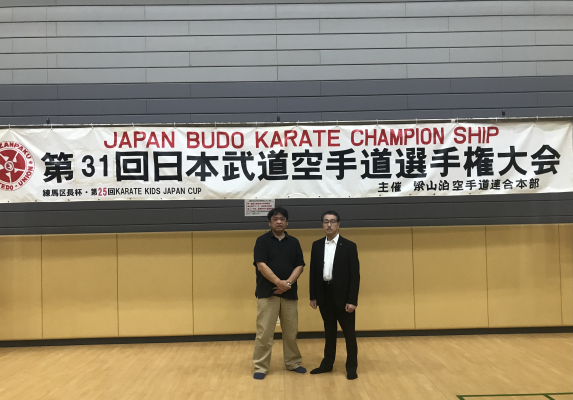 運送業界のパワハラから大宇宙迄をテーマにした話題作、特撮ヒーロー映画~運送ドラゴン~パワード人間バトルクーリエの監督大東賢が第31回日本武道空手道選手権大会に来賓し、映画バトルクーリエをアピールした。