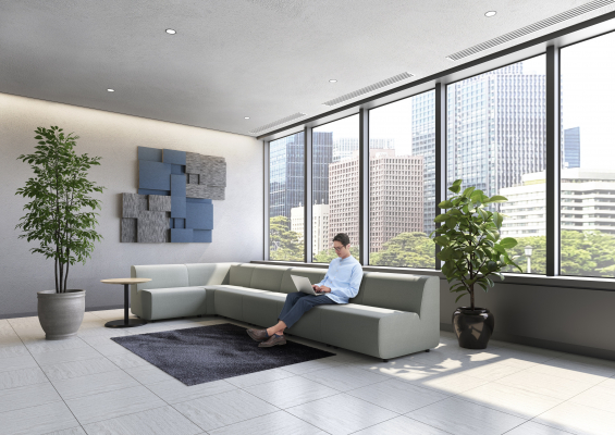 オフィスでの使い方やレイアウトの変更に対応できるフレキシブルなソファーシリーズである。ユーザーの姿勢に寄り添う座面クッションの設計やカバーリング方法など、機能性を高める工夫がシンプルな形状にまとめられている。同シリーズのテーブルと組み合わせることで、さまざまなオフィス環境での使用や自由度の高いレイアウトを可能にしている。森林の健全化に貢献する国産木材や、環境に配慮したファブリックの使用など、素材の選定も高く評価できる。