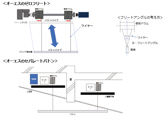 ■巻取ドラムへのワイヤー巻き込み角度を常に安全な直角に保持するオーエスの安全設計思想にもとづく