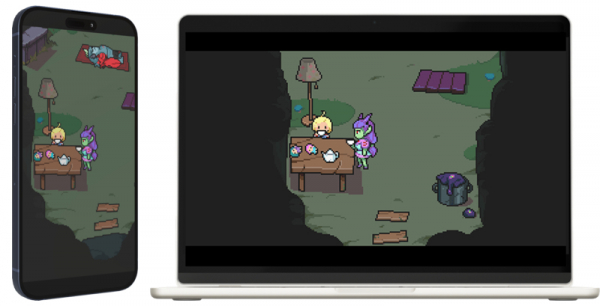 本作はスマートフォンでもPCでも好きな環境から遊ぶことができ、タップやクリックで遊べる他、キーボードやコントローラーにも対応しています。縦向き・横向き両対応なので縦持ちで気楽に遊ぶもよし、コントローラーでがっつり遊ぶもよし、EbiengineTMで開発された本ゲームをお好みの環境でお楽しみください。なお、実況などの配信・収益化に関しても許可いたします。