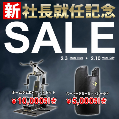 目玉の一部を紹介すると、スーパーダミーミットシールドは5,000円引き、人気のホームジムはマットセットのみ10,000円引き