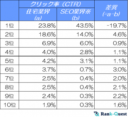 ※ SEO業界のCTR情報はランクエストサイト(https://rank-quest.jp/ )のデータに基づいています。