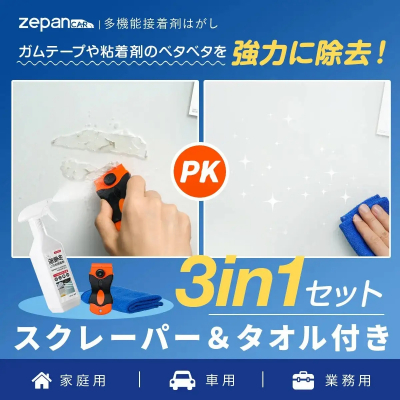 はがしやすさを追求した専用スクレーパーで、テープやステッカーの除去がより簡単に。