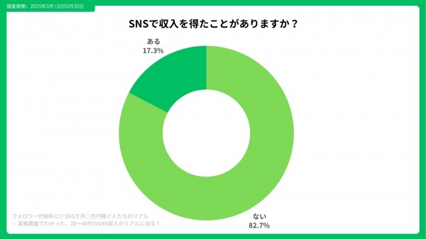 約17.3%が「SNSから収入を得たことがある」と回答